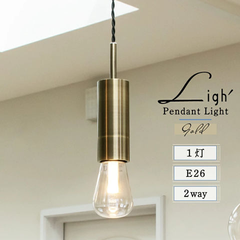 【Phillips Hueに最適】 Ampoule ペンダントライト 照明 おしゃれ ソケット 1灯 E26 スチール リビング ダイニング 寝室 玄関 モダン シンプル インダストリアル 北欧 インテリア ゴールド 金 古美金 照明器具 天井照明 2way LED 電球 スマートライト Ligh'