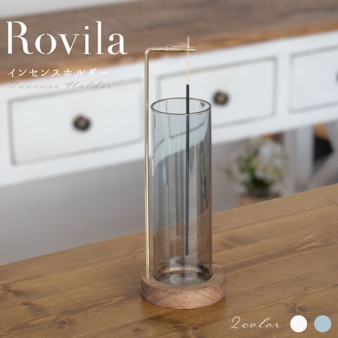 Ampoule アンプール インセンスホルダー お香立て 天然木 ガラス 灰が散らない おしゃれ ナチュラル 灰がこぼれない お香 インテリア シンプル スティック スティックタイプ ウッド 雑貨 プレゼント ギフト リラックス 香炉 香皿 瞑想 ブルーグレー Rovila ロヴィラ