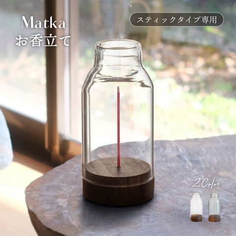 お香立て 線香立て おしゃれ ガラス 木 灰がこぼれない 灰が落ちない お香 立てる インテリア シンプル スティック スティックタイプ 天然木 木製 木 ウッド ホルダー 香道 香皿 瞑想 丸 立てて置く 縦置き フラワーベース ドライフラワー クリア ブルーグレー Matka マトカ