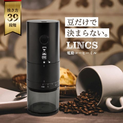 コーヒーミル 電動 39段階 臼式 コニカル式 セラミック刃 コードレス 洗える 水洗い 電動コーヒーミル アウトドア 充電式 コンパクト 自動 おしゃれ 珈琲 粗挽き 細挽き 粒度調整 自動停止 ブラック 黒 プレゼント ギフト ONE SECOND ワンセカンド