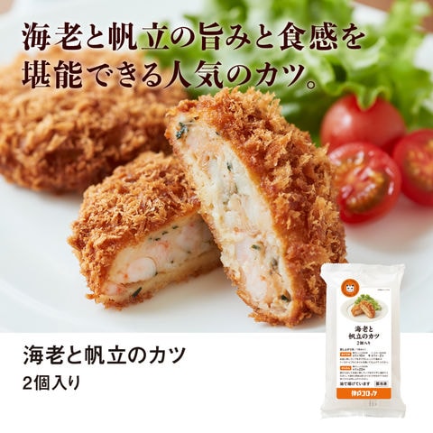 ◆海老と帆立のカツ 2個入り:海老と帆立の美味しさを堪能。海老と帆立の旨みと食感が楽しめる、「神戸コロッケ」でも人気の一品。胡麻と大葉の香りが、魚介の旨みを引き立てます。