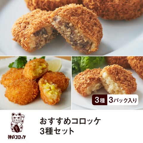 神戸コロッケ おすすめコロッケ3種セット 3種3パック入り 送料無料 クリームコロッケ コーン ビーフコロッケ じゃがいも 牛肉 冷凍 ストック ギフト 油調済み レンジ調理 時短 簡便