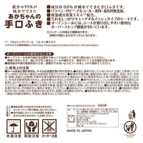 ●成分の99%が純水でできた手口ふきです。
