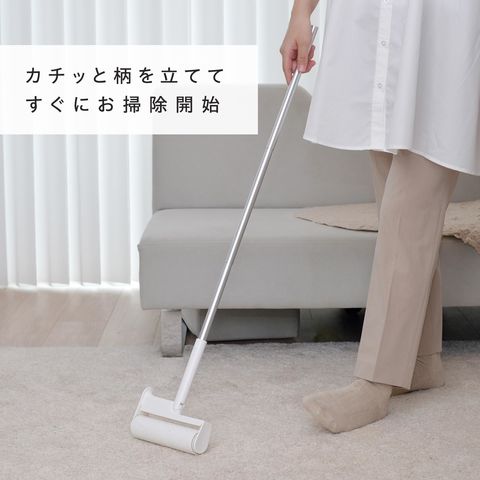 ●最長約90cmのロングタイプで、立ったままの姿勢でカーペットや床面の掃除が可能です。
