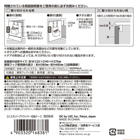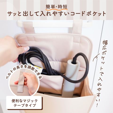 レック 出し入れカンタン ドライヤー収納ケース らくスポッ! / 大きめのドライヤーが入る幅広サイズ / 入れやすいコードポケット付 / 吊下げ可能 ・ 旅行先にも