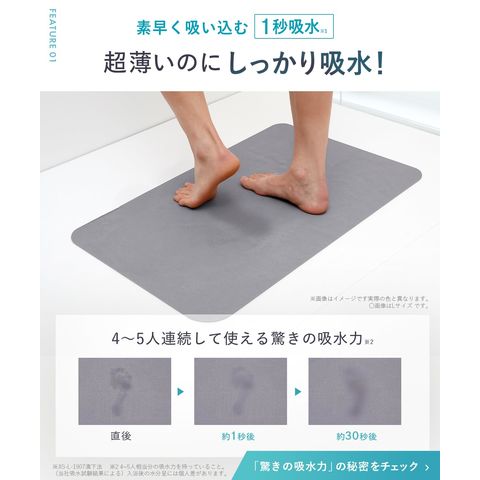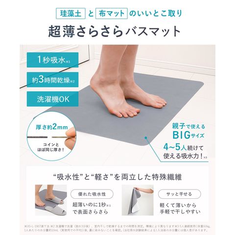 笑激SHOCK 超薄 さらさら マジかる バスマット Lサイズ (50×80cm) グレー/日本製/すべり止め 加工/驚きの薄さでしっかり吸水