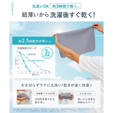 ●洗濯時、収納時にかさばらず、速乾性に優れています。