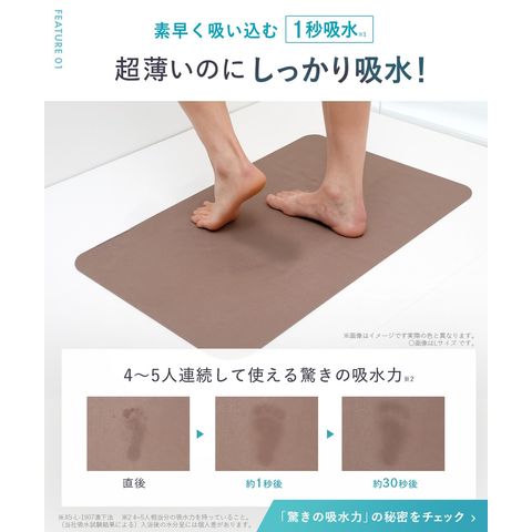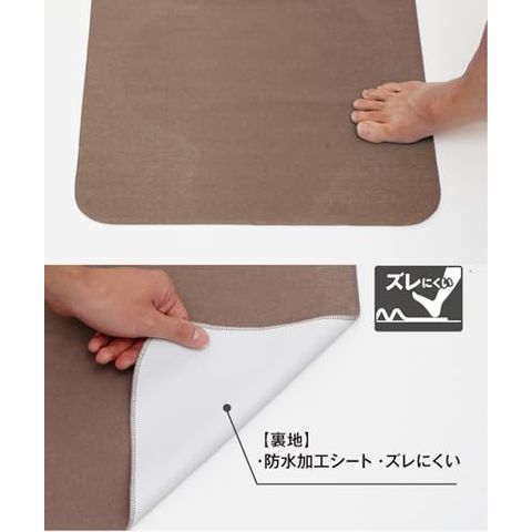 笑激SHOCK 超薄 さらさら マジかる バスマット Lサイズ (50×80cm) ブラウン/日本製/すべり止め 加工/驚きの薄さでしっかり吸水