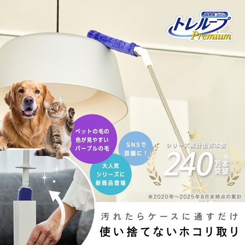 レック 激落ちくん 高密度ブラシ トレループ Premium (ハンディ伸縮タイプ ・ ペットの毛用 ホワイト) 最長約93cm くり返し使える ホコリ取り/ケースに通すとモップがキレイに/スライドケースでホコリをまとめて捨てられる