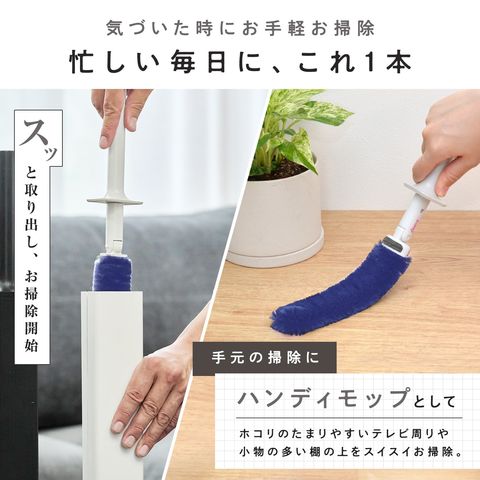 ●伸縮タイプなので、照明やエアコンなどの手の届かない高い所や、家具・家電のスキマなどに便利です。