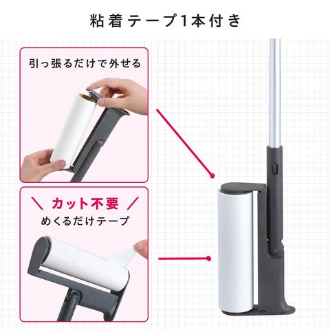 ●本体の端を引っ張るだけでかんたんに粘着テープの取り付け・取り外しが可能です。