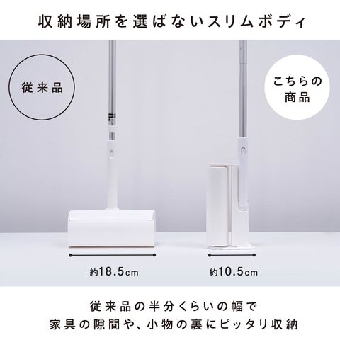 ●最長約90cmのロングタイプで、立ったままの姿勢でカーペットや床面の掃除が可能です。