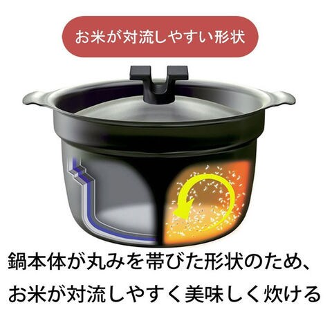 鍋本体が丸みを帯びた形状のためお米が対流しやすく美味しく炊けます。