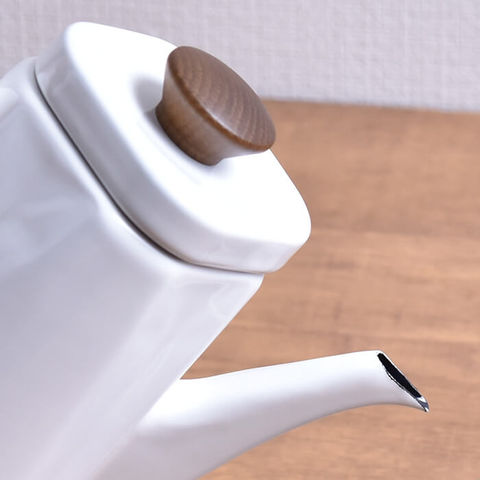 さらに、そんなの琺瑯(ホーロー)のドリップポットのフタの持ち手部分は、天然木(楢)なので、加熱時でも熱くなりにくい作りになっています。