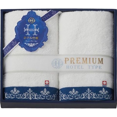 今治プレミアムホテル仕様タオルは白と青を基調にしたオーナメント柄をヘムにあしらいました。本物志向の男性・女性にお薦めできる今治タオルです。ホテルタイプと同様のオーバーロックもミシン仕上げで耐久性にも優れた、プレミアム感のある今治タオルです。