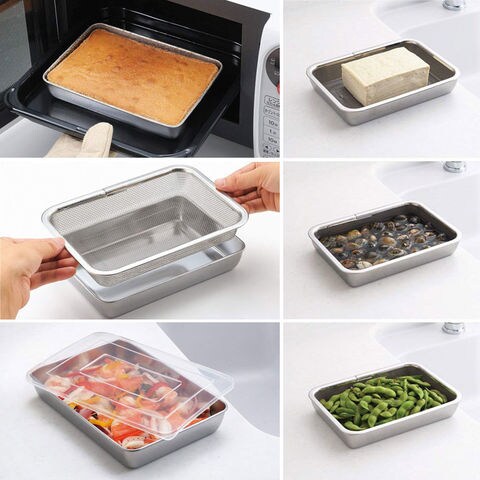 調理によく使うバットとザル、透明蓋のセットです。