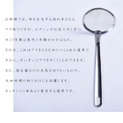 あると便利なキッチンツール。料理も楽しくなります。 調理のときに出るアクをとるのに1本あると重宝します。