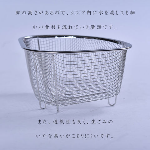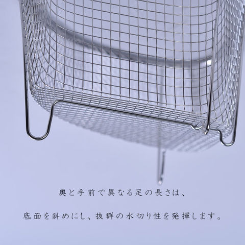 粗目の網目と傾斜になった底面によって、水切れの良さと通気性が高く、臭いがこもりにくくなつています。
