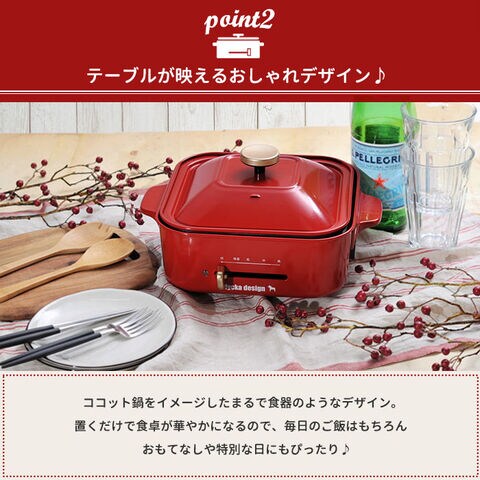 ・ココット琺瑯鍋をイメージしたまるで食器のようなおしゃれなデザイン。置くだけで食卓が映えるので毎日のご飯にはもちろん、特別な日やおもてなしにもぴったり♪