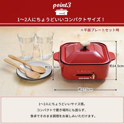 ・1~2人にちょうどいいコンパクトなサイズ感。置き場所にも困らず、食卓でそのまま調理をお楽しみいただけます。