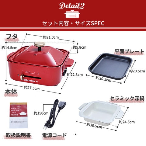 ・プレート、鍋、本体は取り外しができ、プレート、鍋類を丸洗いできてお手入れもラクラク!
