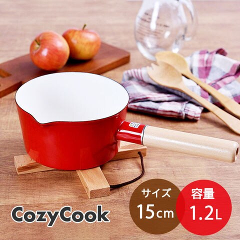 コージークック ホーロー ミルクパン 片手鍋 15cm レッド 琺瑯