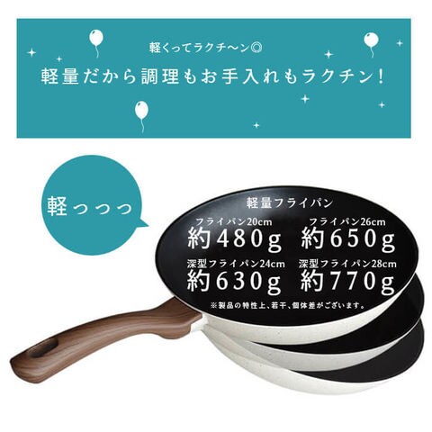 女性やご高齢の方にも安心。軽量で腕が疲れにくいフライパンです。