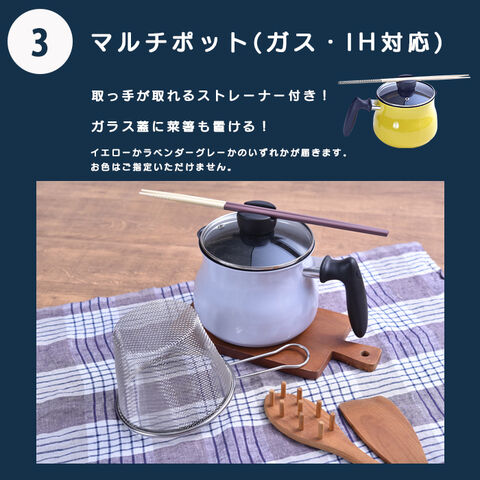 【3】マルチポット 取っ手が取れるストレーナー付き(イエローかラベンダーグレーが届きます。)