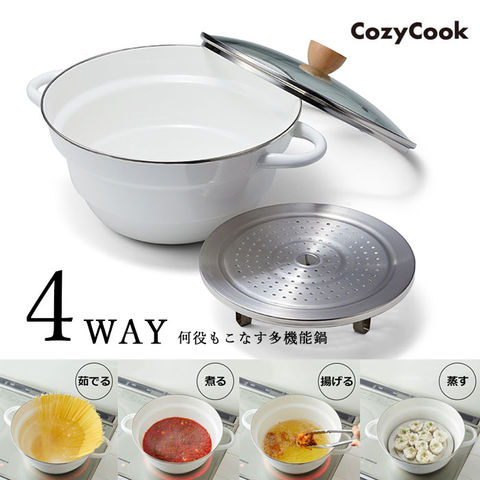 コージークック ホーロー製 万能多機能鍋 28cm(4WAY)すのこ・ガラス蓋付き