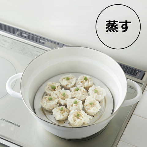 ●煮る、揚げるはもちろん、スノコが付いていますので蒸し料理もできます。