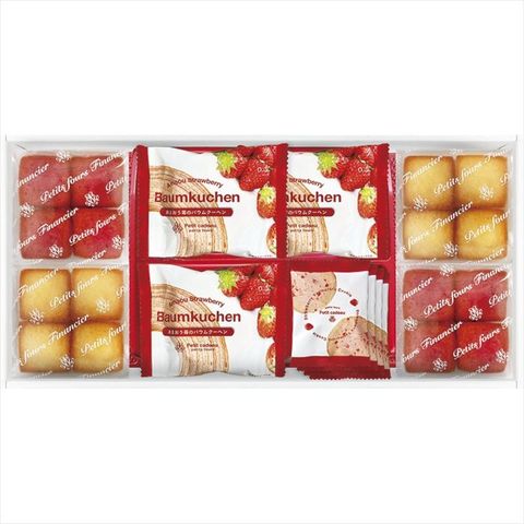 焼きほろろクッキー(イチゴ)×4、あまおう苺バウムクーヘン×3、プチフィナンシェ(あまおう苺・プレーン)(各4個入)×各2