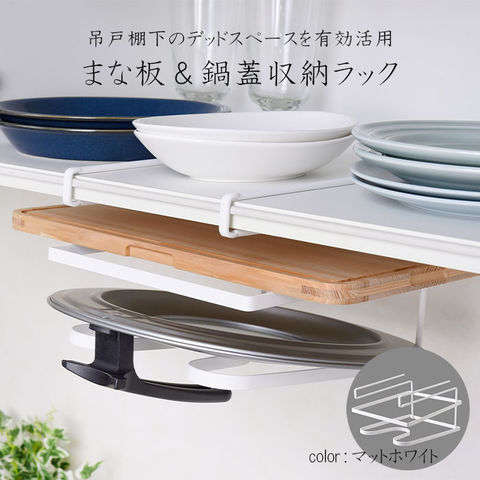 アーネスト 吊戸棚下 収納ラック まな板 & 鍋フタ マットホワイト A-77673 キッチンラック 吊り下げラック まな板収納 フライパン蓋収納 台所収納 キッチン収納