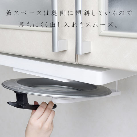 ●まな板と鍋のフタを同時に収納でき、フタスペースは奥側に傾斜しているので、落ちにくく出し入れもスムーズ。