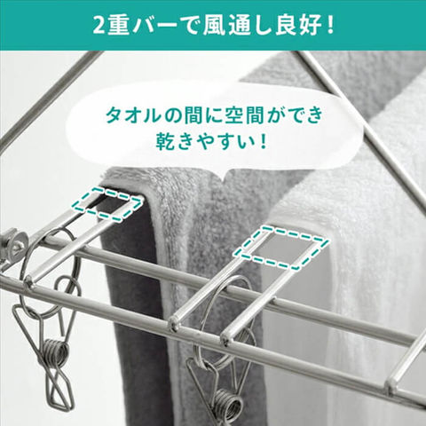 ●2重バーのため、風通し良好で乾きやすい