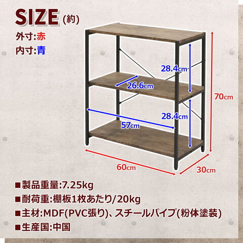オープンラック 3段 幅60cm バルネ ヴィンテージ調 ラック スチールラック 3段ラック 三段ラック 収納棚 フリーラック シェルフ マガジンラック アイアンシェルフ【送料無料】のレビュー