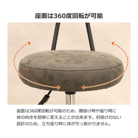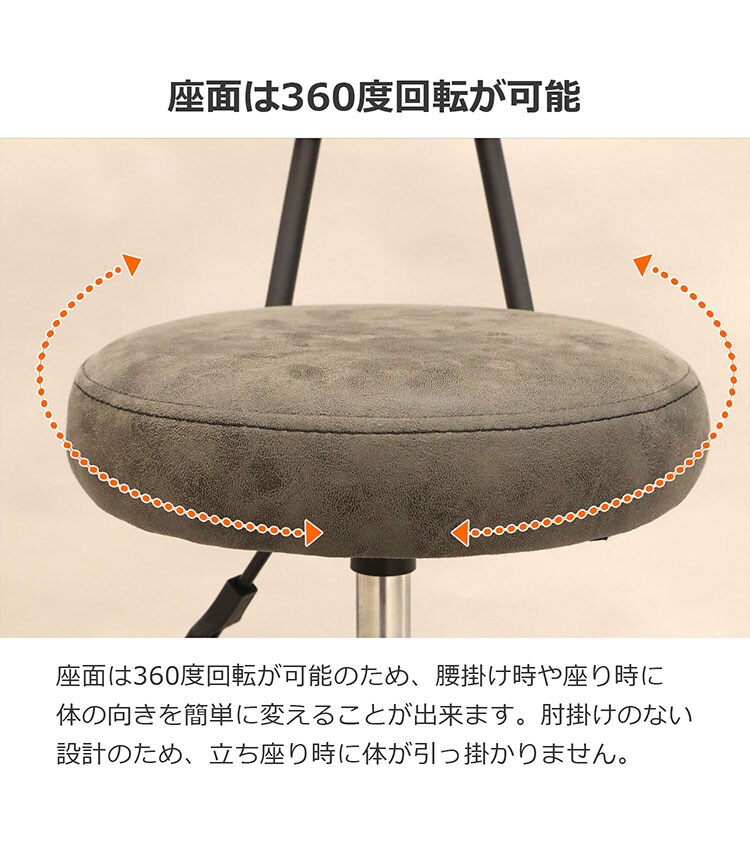 ・座面は360度回転が可能のため、腰掛け時や座り時に体の向きを簡単に変えることが出来ます。