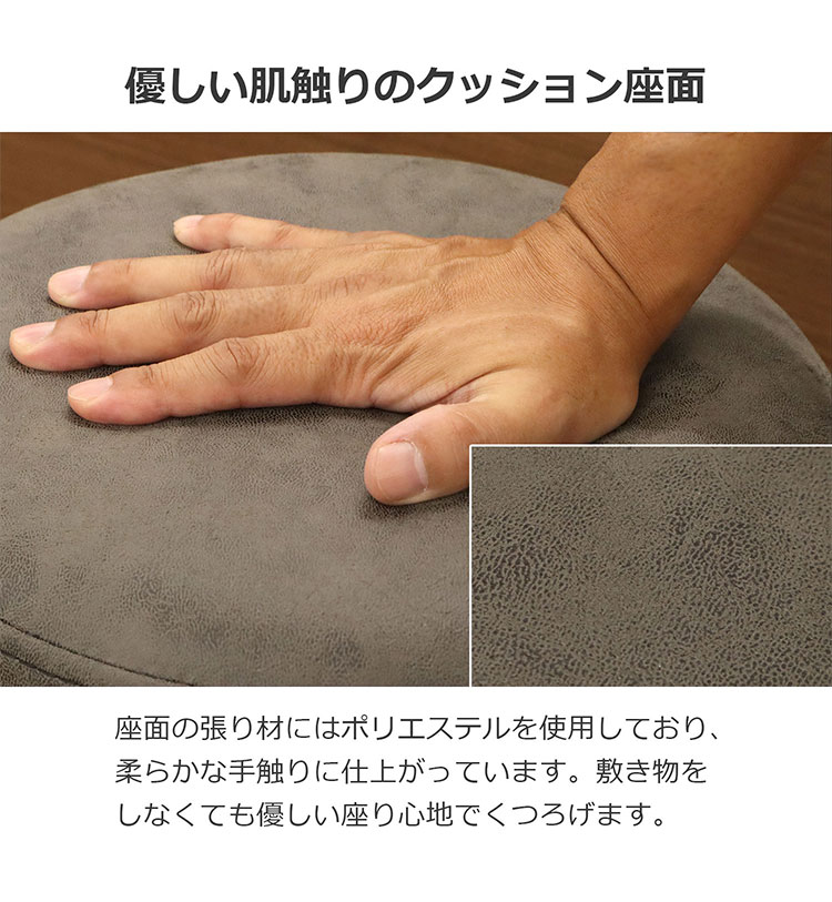 ・座面の張り材にはポリエステルを使用しており、柔らかな手触りに仕上がっています。敷き物をしなくても優しい座り心地でくつろげます。
