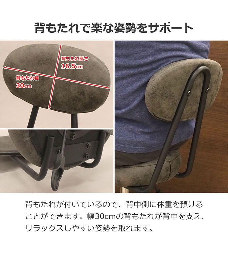 ・背もたれが付いているので、背中側に体重を預けることができます。