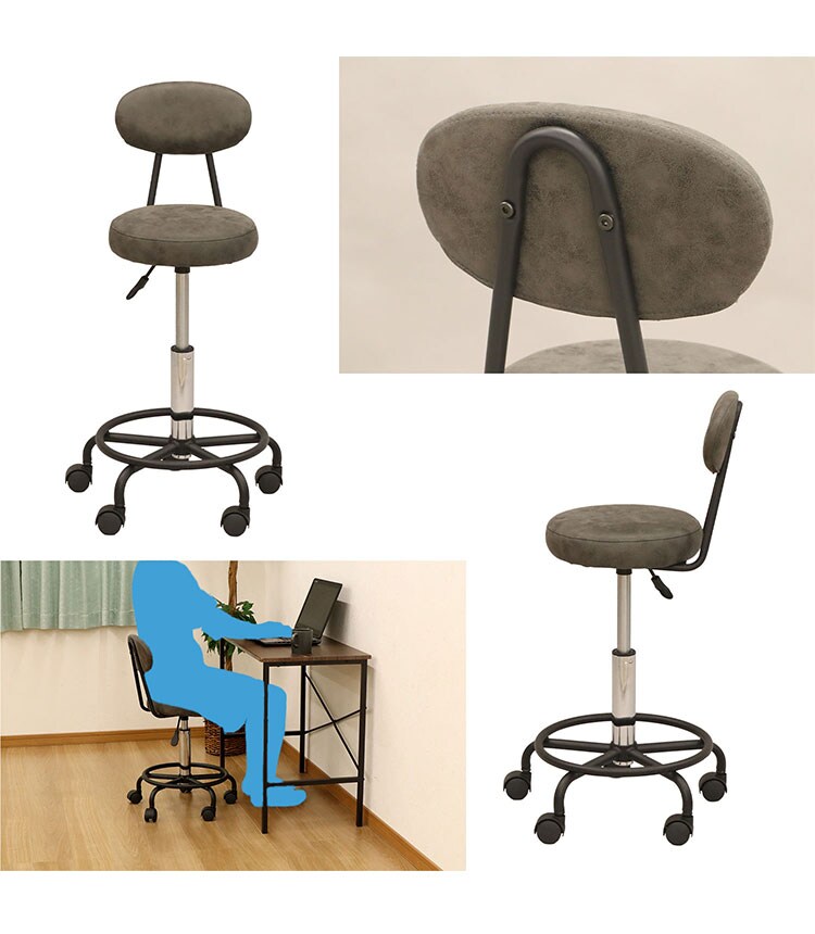 キャスター付きチェア 背付き 足置き付 丸椅子 高さ調整 キャスター付き椅子 キャスター スツール 回転椅子 エステスツール カットチェア ネイル サロン 美容室 施術 椅子 チェア 昇降式【送料無料】のレビュー