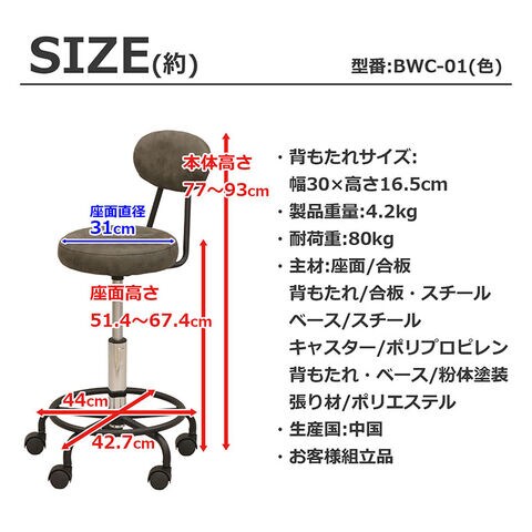 ・製品サイズ(約):幅44×奥行42.7×高さ77~93cm