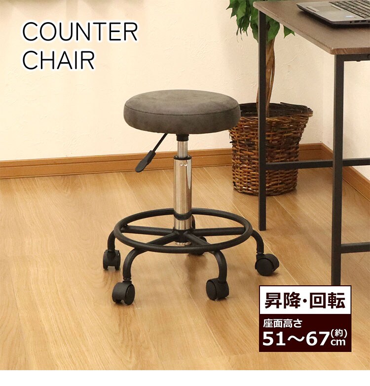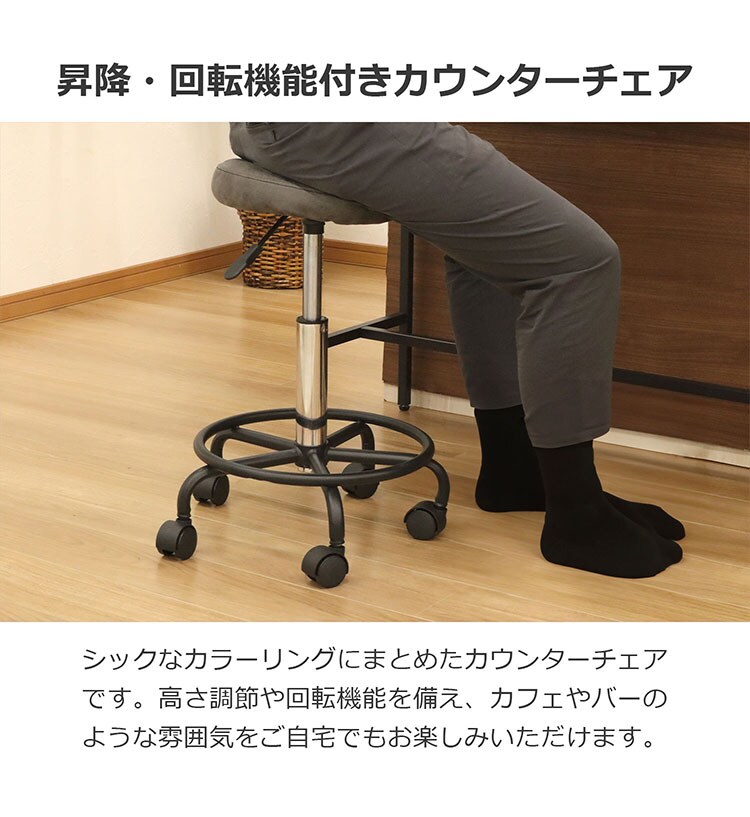 シックなカラーリングにまとめた、昇降機能・回転機能付きカウンターチェアです。