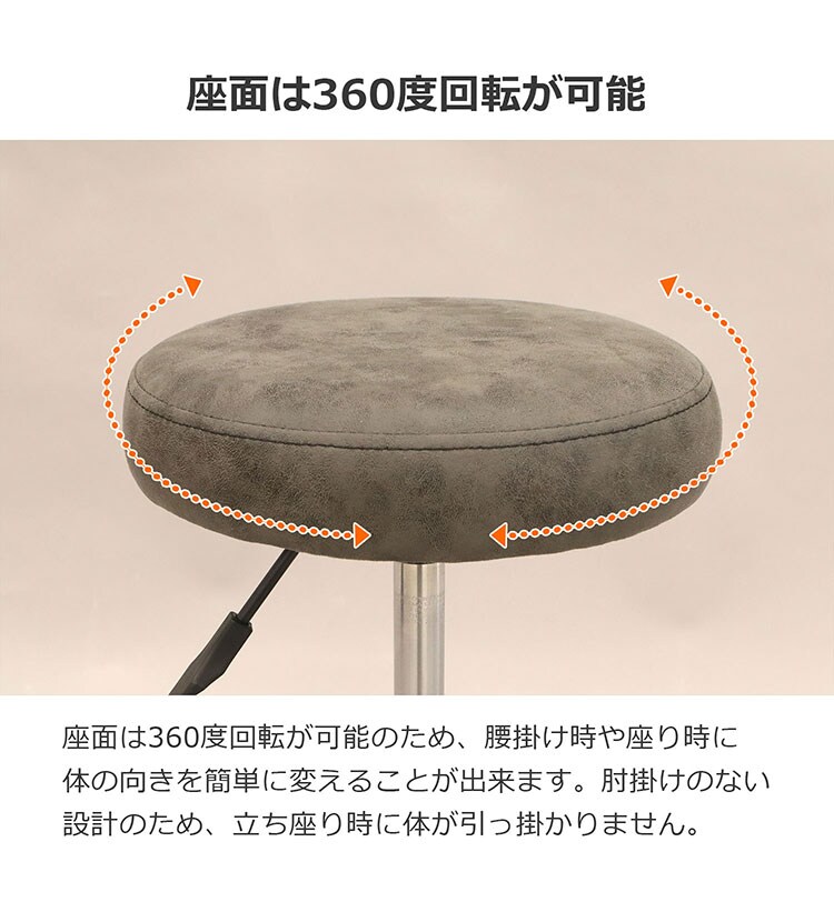 ・座面は360度回転が可能のため、腰掛け時や座り時に体の向きを簡単に変えることが出来ます。