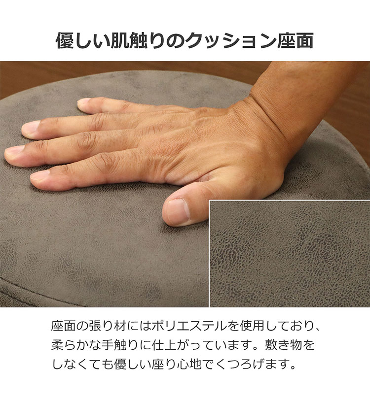 ・座面の張り材にはポリエステルを使用しており、柔らかな手触りに仕上がっています。敷き物をしなくても優しい座り心地でくつろげます。