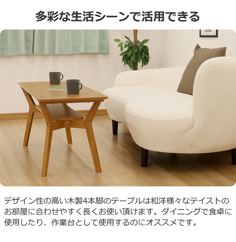 デザイン性の高い木製4本脚のテーブルは、和洋様々なテイストのお部屋に合わせやすく長くお使い頂けます。