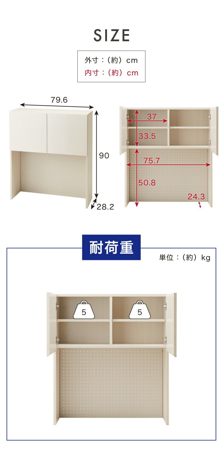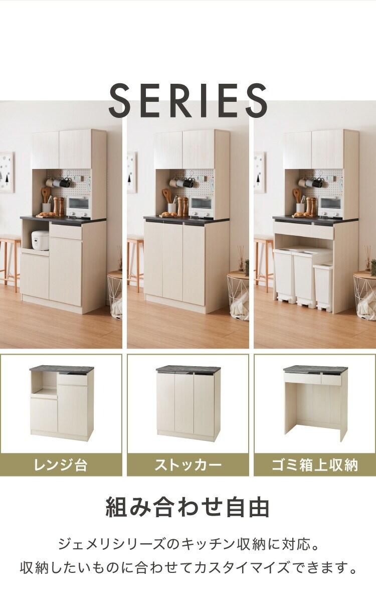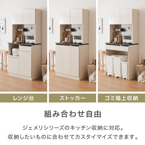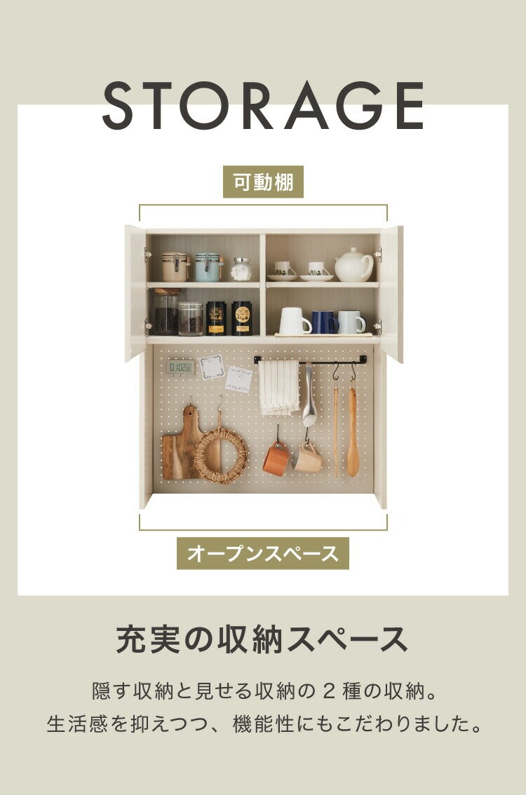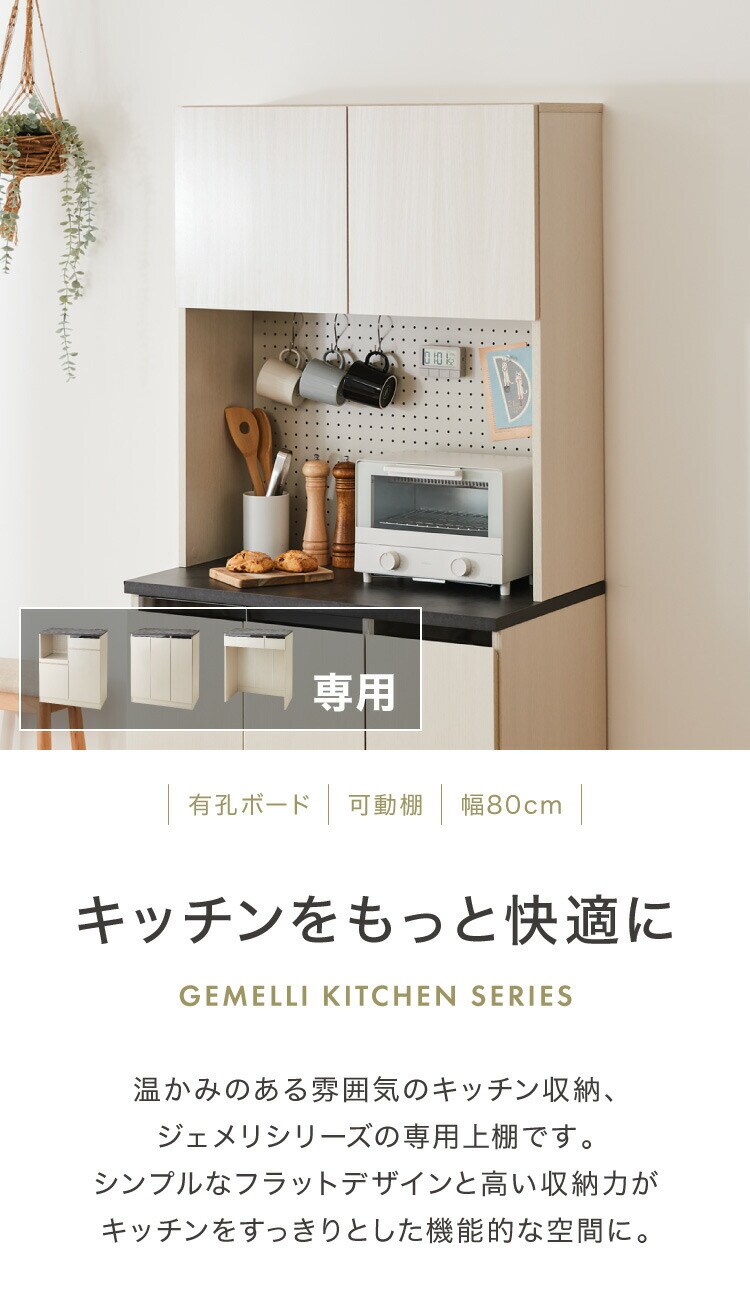 ジェメリ 上棚 食器棚 ジェメリ 上棚 レンジ台 収納台 扉付き 可動棚 食器 小物 収納 有孔ボード スチール製 磁石 キッチン収納 幅80 奥行28 高さ90 組立品【送料無料】