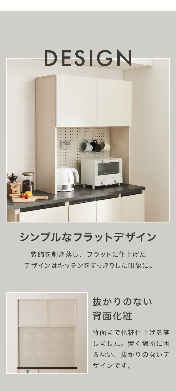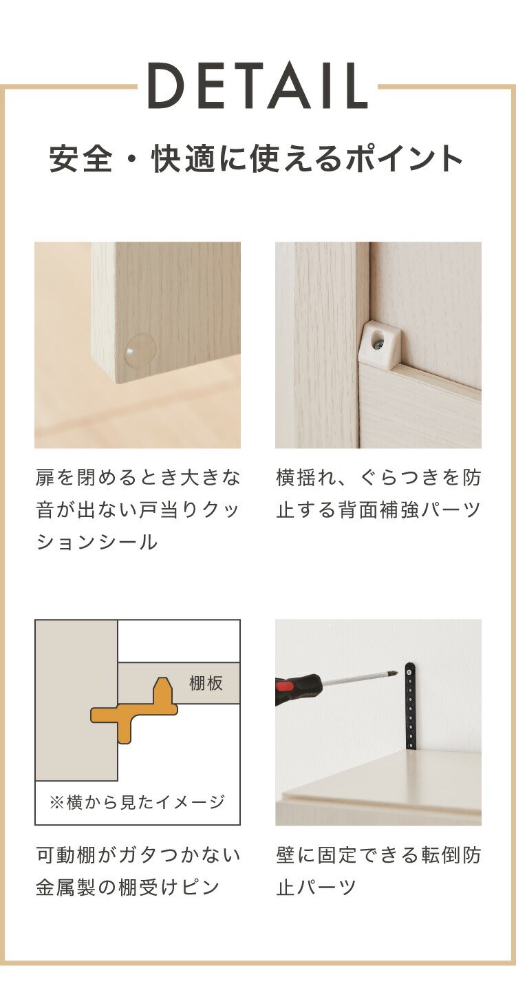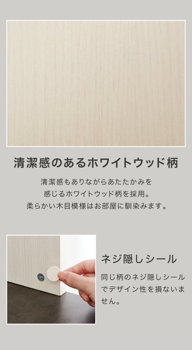 主材:【板材】プリント紙化粧繊維板、【背板(下)】スチール