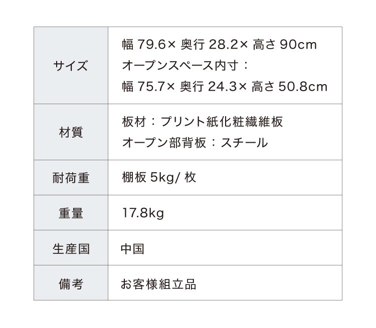 製品サイズ(約):幅79.6×奥行28.2×高さ90cm