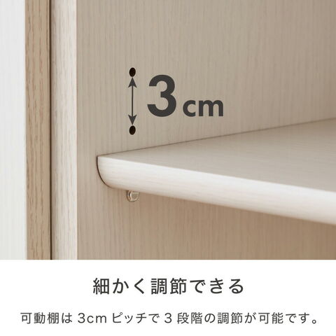 高さ調節できる可動棚が2枚付いています。高さは3段階に調節可能。空間を無駄なく使うことができます。