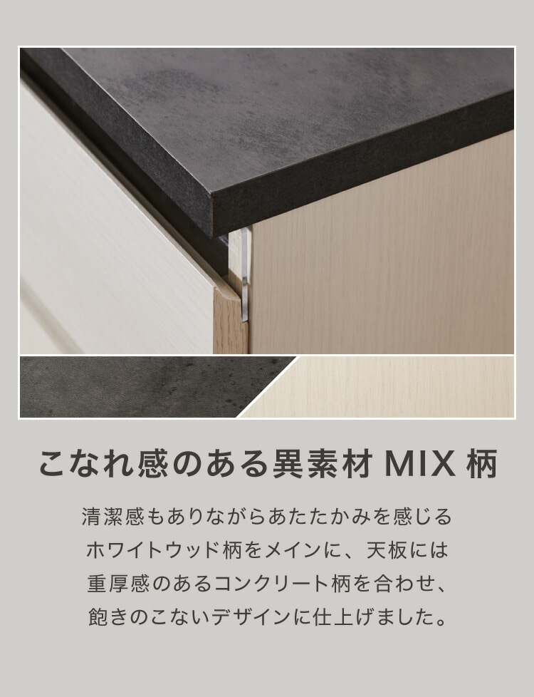 主材:【天板】合成樹脂化粧繊維板(塩化ビニル樹脂)、【その他板材】プリント紙化粧繊維板、【引出しの一部】アクリル樹脂