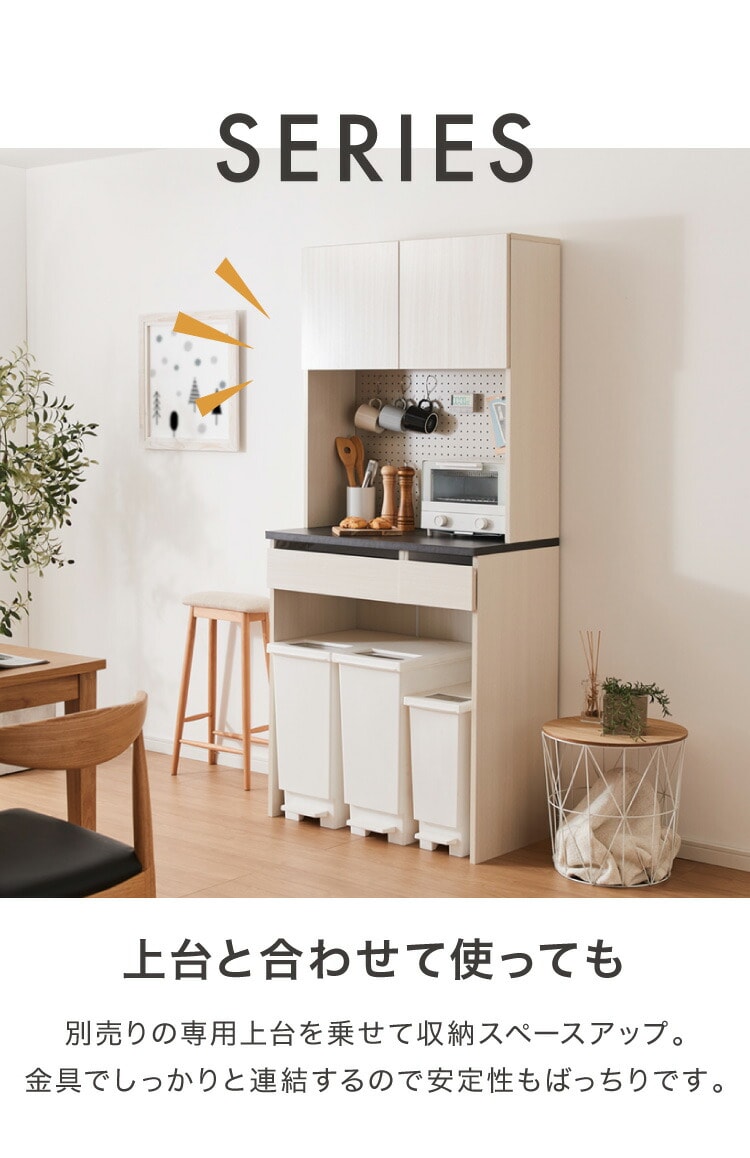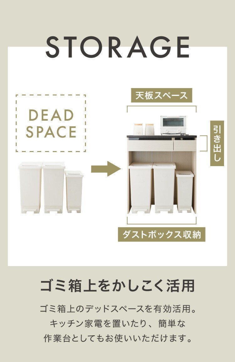 ジェメリ ゴミ箱上収納台 ホワイトウッド 収納 ダストBOX上 収納台 幅80 奥行45 調理家電 コンセント付 カトラリー キッチン小物 収納 引出し キッチンワゴン 組立品【送料無料】